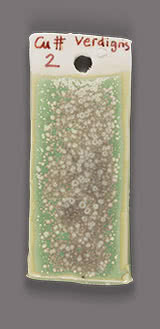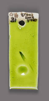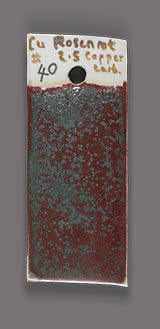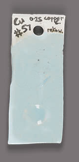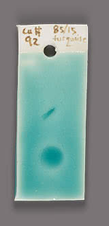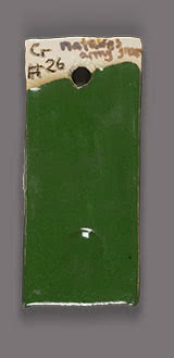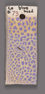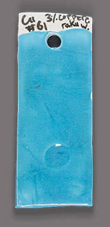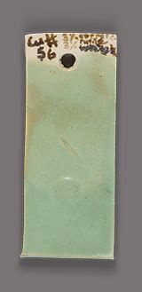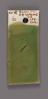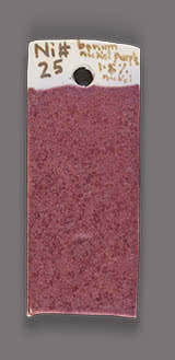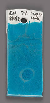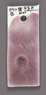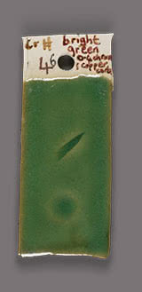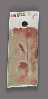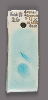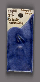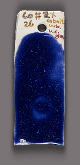 Increasing percentages of oxide make incrementally deeper colours (a line blend) or multiple oxides can be added (cross blends). Some combinations of oxide give surprising effects: chromium and tin in the correct proportions make pink, not green as expected.