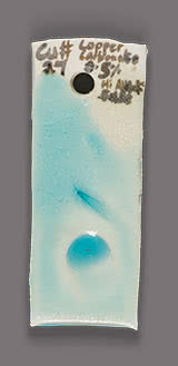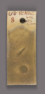 Half of these glaze tests are mixed using one of the 8 base glazes, to which the oxides are added. Different ingredients in the bases enhance different oxides.